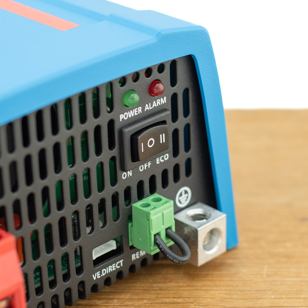 De Phoenix omvormer is beveiligd tegen te hoge temperatuur, overbelasting, uitgangskortsluiting en te hoge of te lage accuspanning.