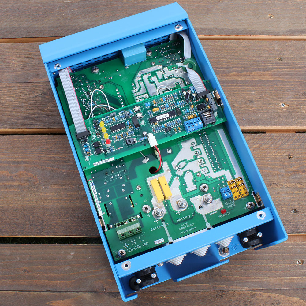 De Victron Phoenix lader is een hoogfrequente acculader en dat maakt deze lader stil in het gebruik.