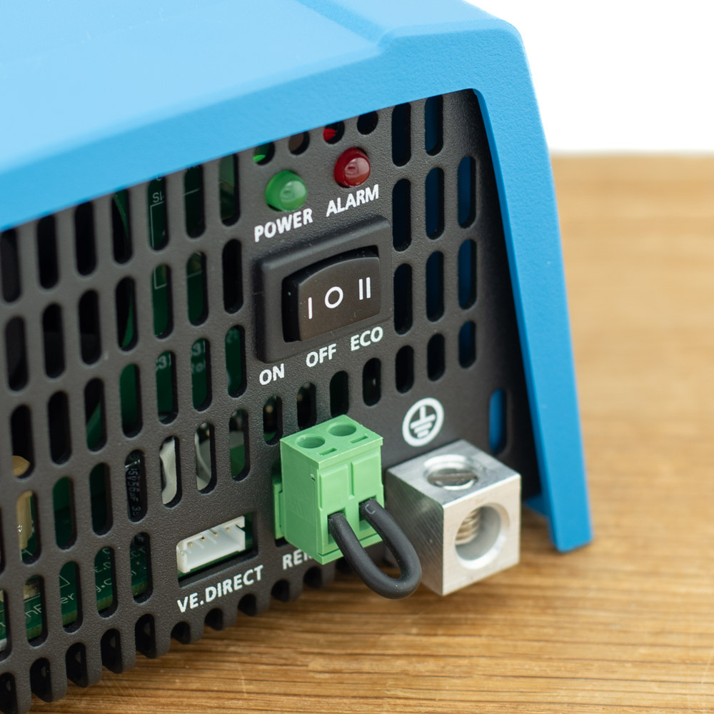De Phoenix omvormer is beveiligd tegen te hoge temperatuur, overbelasting, uitgangskortsluiting en te hoge of te lage accuspanning.