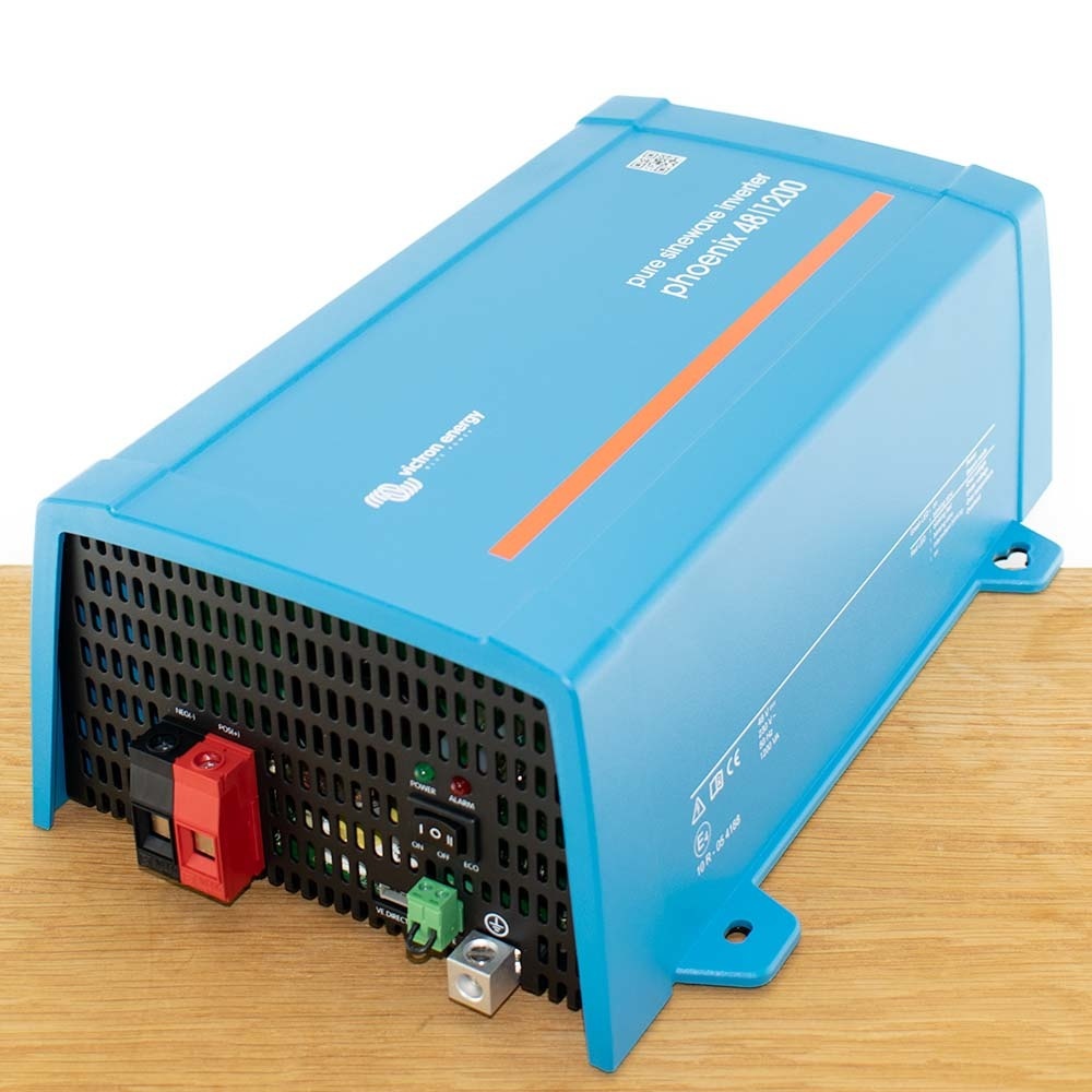 De Victron Phoenix 48/1200 Omvormer is een zuivere sinusomvormer die een 48 V accuspanning converteert naar een betrouwbare 230 V 50/60 Hz spanning. Daarbij geeft de Phoenix 48/1200 1200VA (1000W) aan continue vermogen en 2200 Watt aan piekvermogen. Hiermee kunt u dus 230V apparatuur aansluiten en voeden via uw 48V accu.