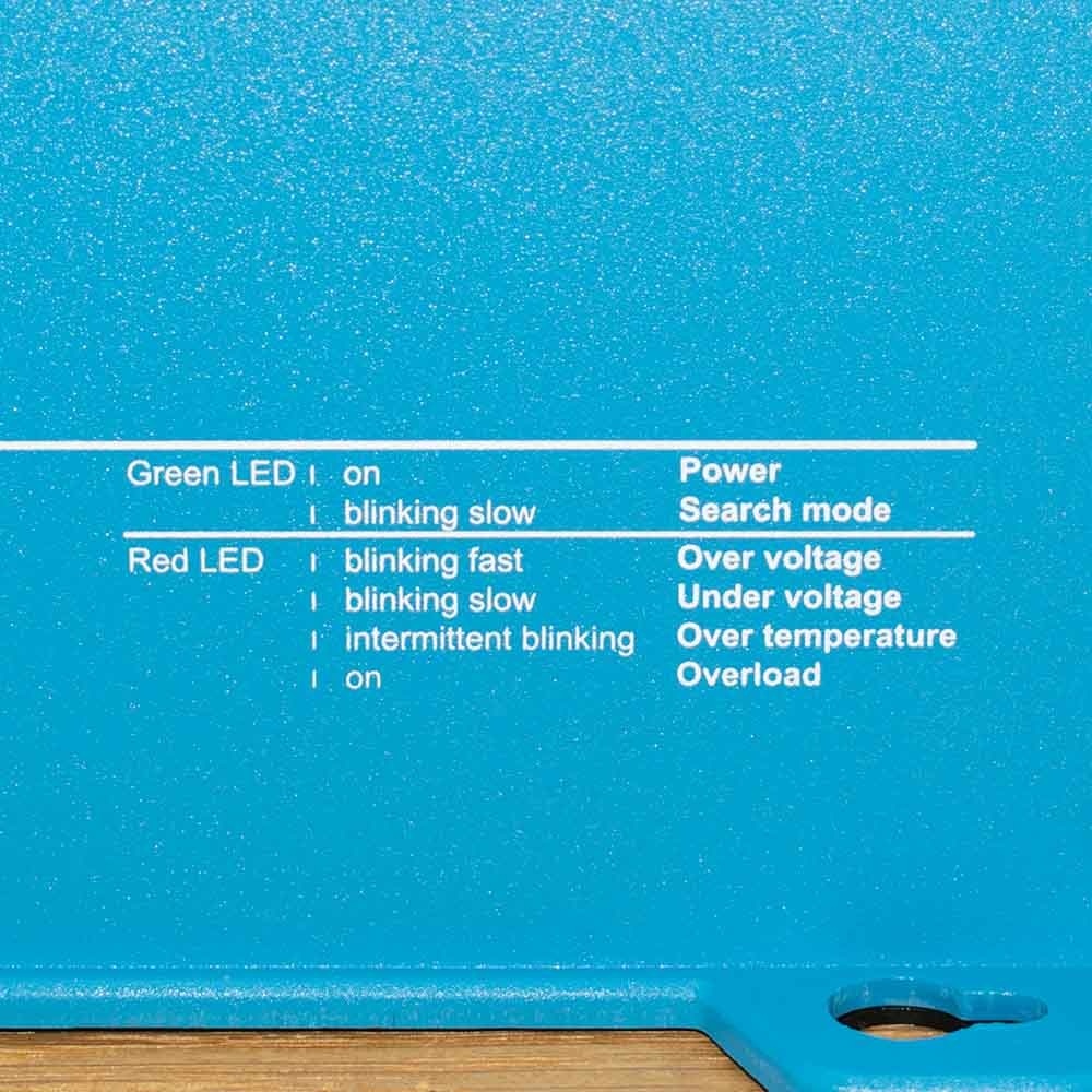 De Phoenix omvormer is beveiligd tegen te hoge temperatuur, overbelasting, uitgangskortsluiting en te hoge of te lage accuspanning.