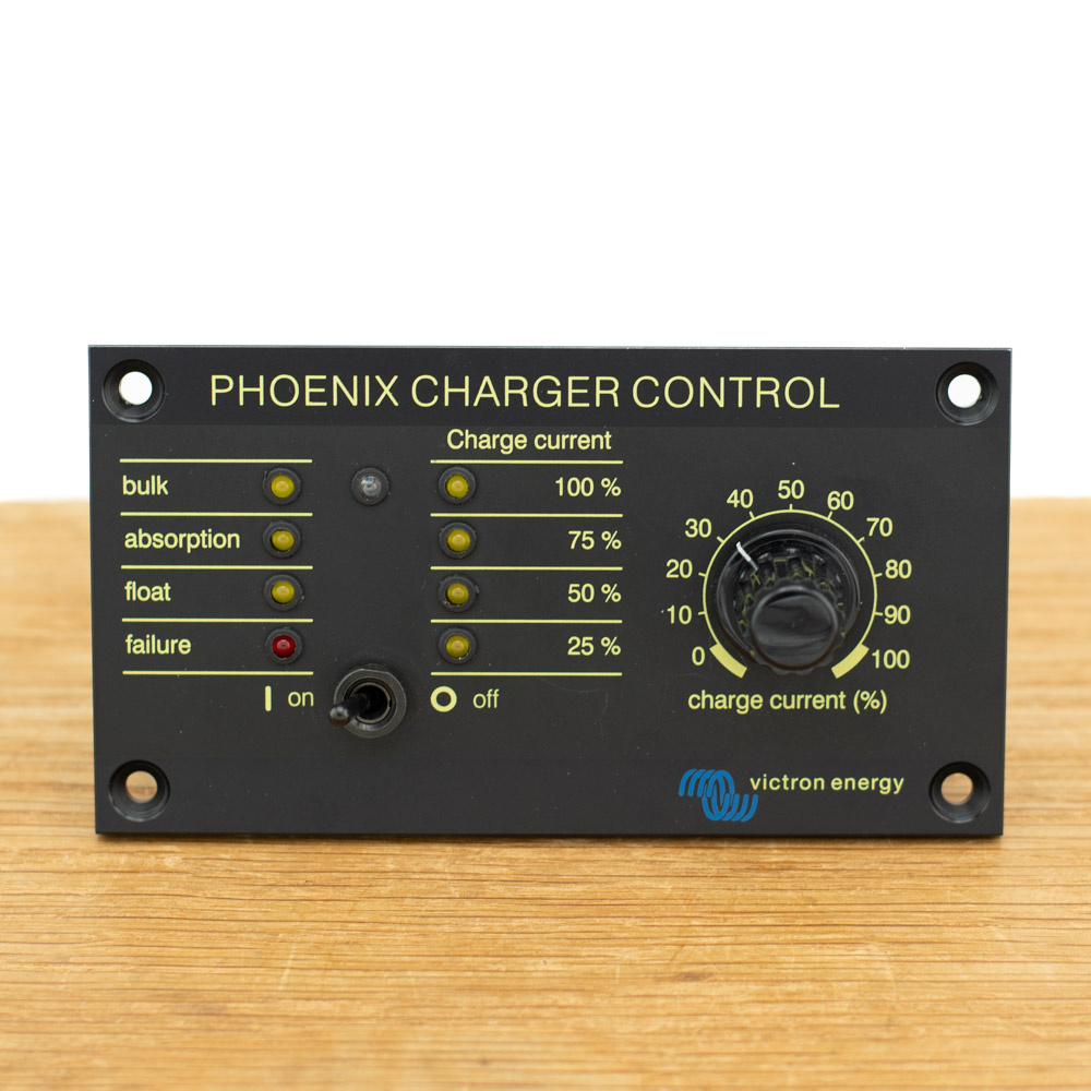 De Victron Phoenix Charger Control is een controlepaneel die het mogelijk maakt om de laadstroom aan te passen en daarnaast de systeem status af te lezen.