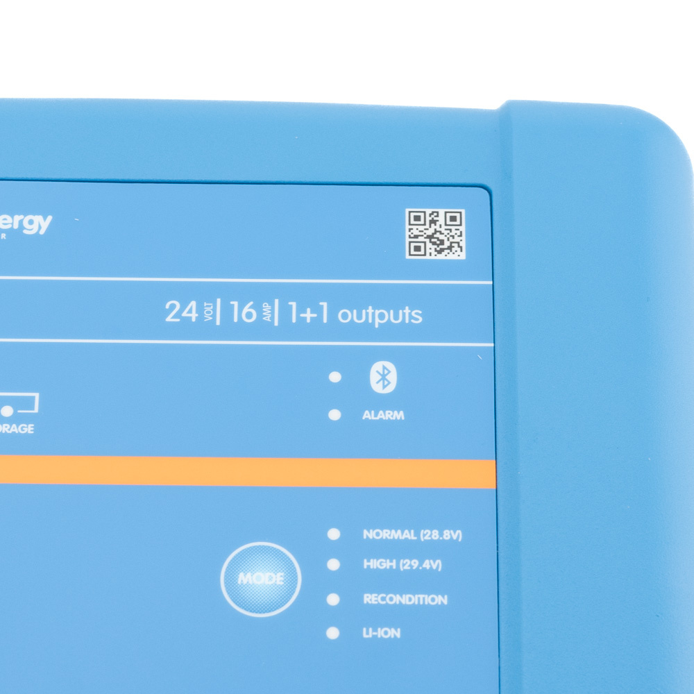 Het laadalgoritme kan worden ingesteld met behulp van Bluetooth en de Victron app of de VE.Direct interface. Met de modusknop kunnen drie voorgeprogrammeerde laadalgoritmes worden gekozen.
