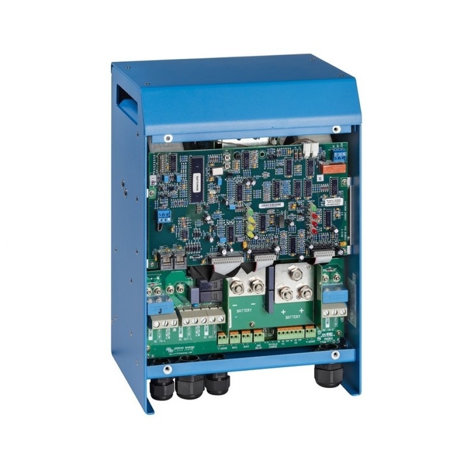 De Victron Quattro 24/3000/70-50/50 is een combinatie van een krachtige DC/AC pure sinusomvormer, een geavanceerde krachtige acculader en een omschakelautomaat, ondergebracht in een robuuste behuizing.