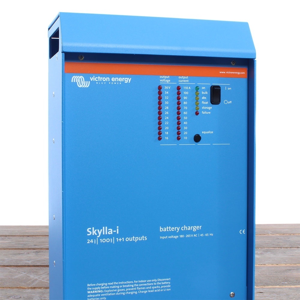 De Victron Skylla-i 24/100 (1+1) is een veelzijdige krachtige 24V acculader. De Skylla-i is licht en compact en de laad-spanning kan aangepast worden aan elk type open of gesloten accu. De Skylla-i wordt veel toegepast in situaties waar snel en veilig acculaden van belang is.