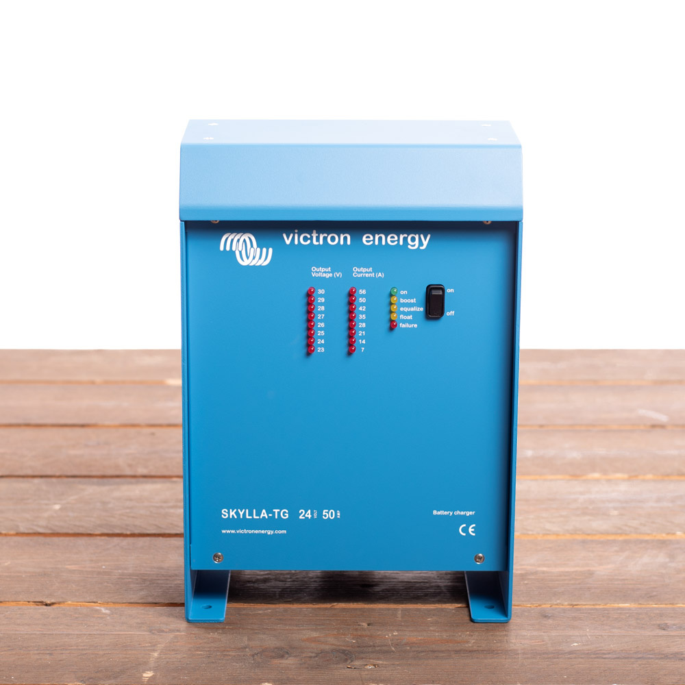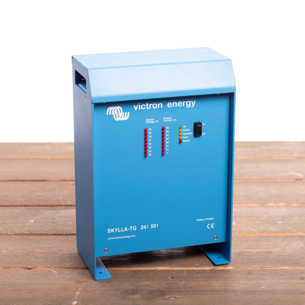 De Victron Skylla-TG 24/50 (1+1) GL is een veelzijdige krachtige 24V acculader. De Skylla-TG is licht en compact en de laad-spanning kan aangepast worden aan elk type open of gesloten accu. De Skylla-TG wordt veel toegepast in situaties waar snel en veilig acculaden van belang is.