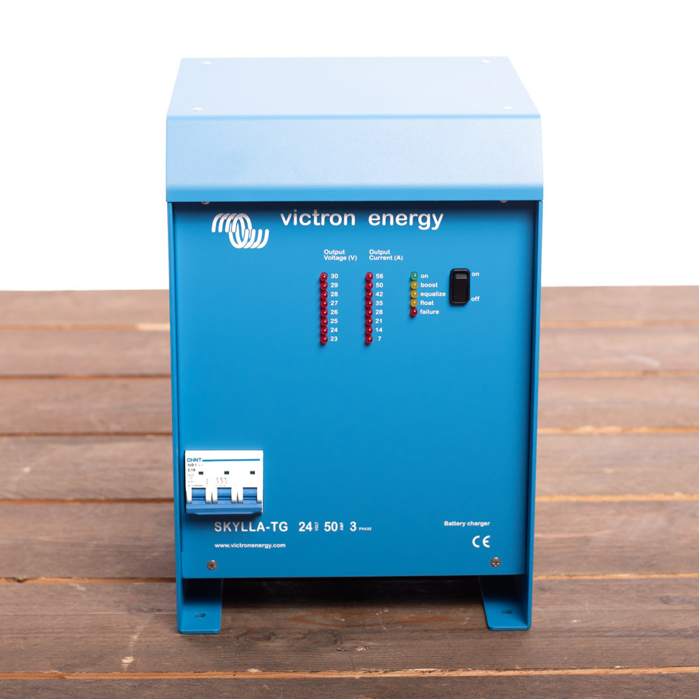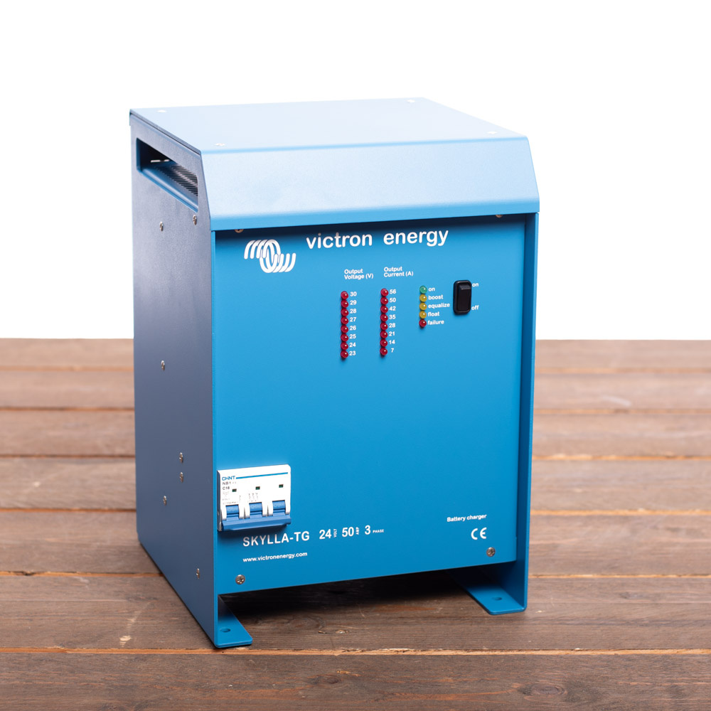De Victron Skylla-TG 24/50 3-phase (1+1) is een veelzijdige krachtige 24V acculader. De Skylla-TG is licht en compact en de laad-spanning kan aangepast worden aan elk type open of gesloten accu. De Skylla-TG wordt veel toegepast in situaties waar snel en veilig acculaden van belang is.