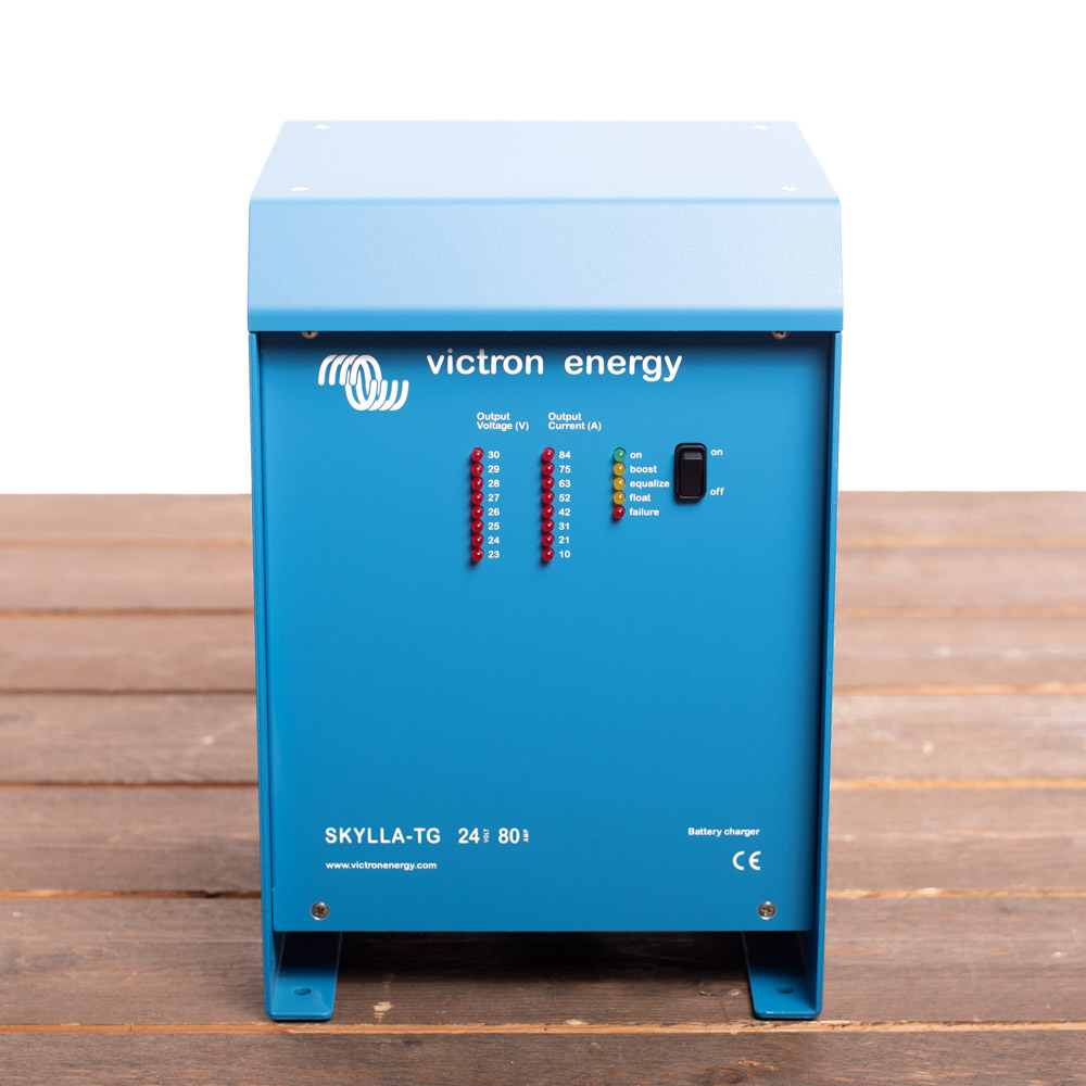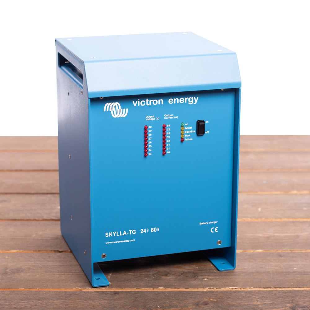 De Victron Skylla-TG 24/80 (1+1) is een veelzijdige krachtige 24V acculader. De Skylla-TG is licht en compact en de laad-spanning kan aangepast worden aan elk type open of gesloten accu. De Skylla-TG wordt veel toegepast in situaties waar snel en veilig acculaden van belang is.