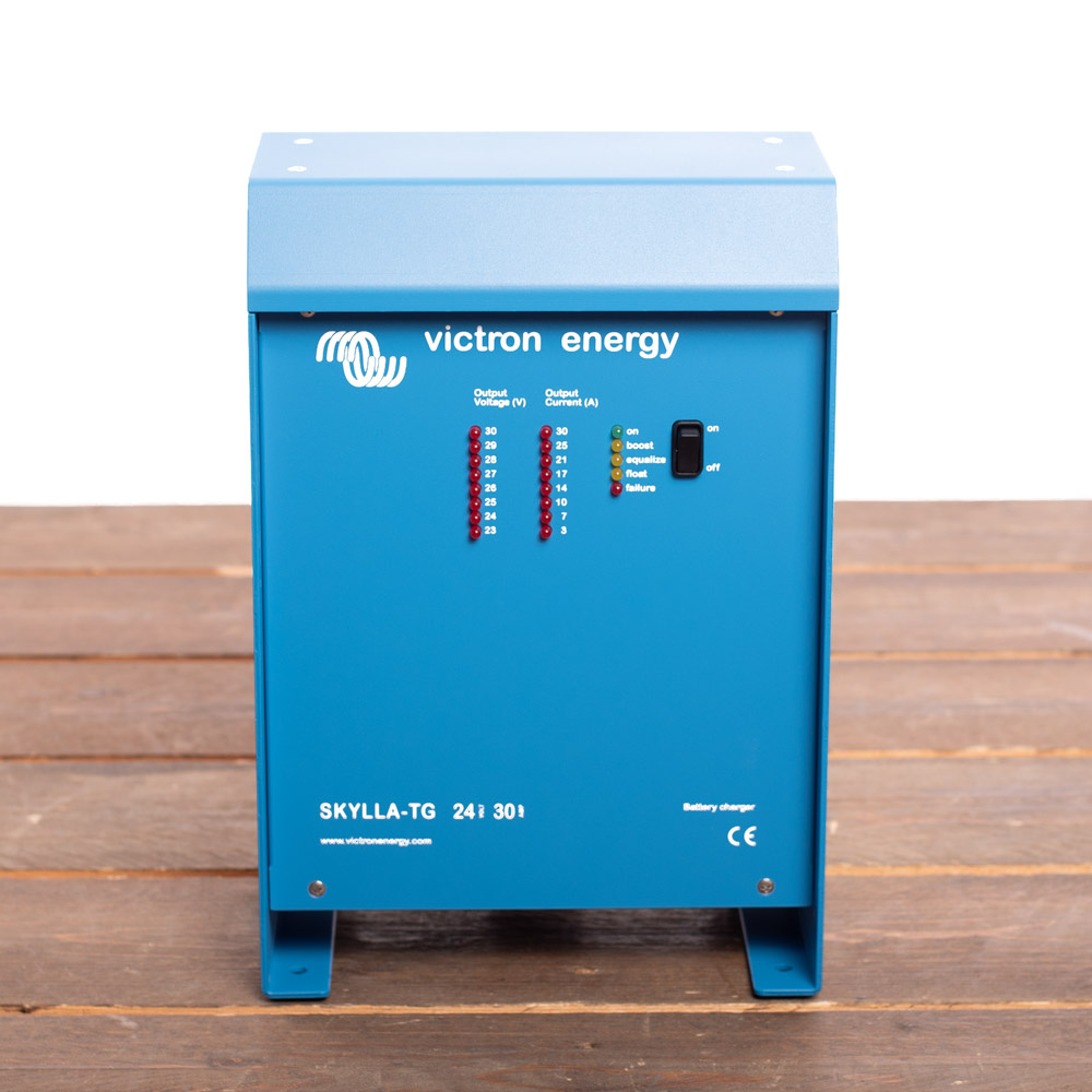 De Victron Skylla-TG 24/30 (1+1) GL is een veelzijdige krachtige 24V acculader. De Skylla-TG is licht en compact en de laad-spanning kan aangepast worden aan elk type open of gesloten accu. De Skylla-TG wordt veel toegepast in situaties waar snel en veilig acculaden van belang is.