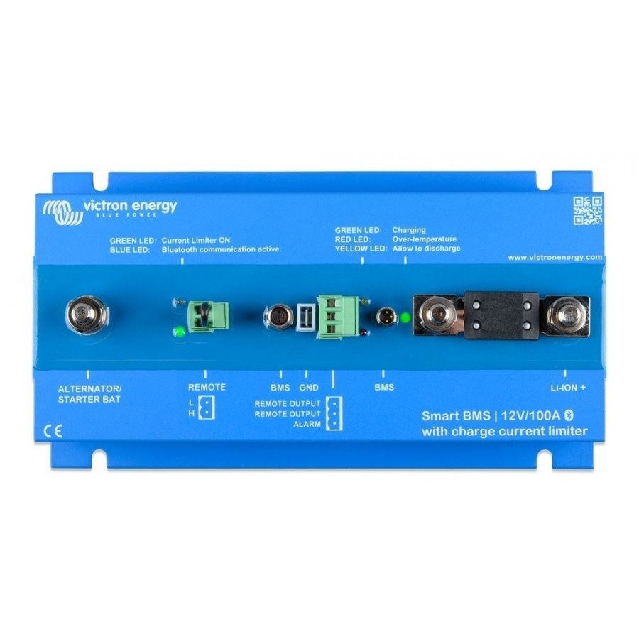 De Victron Smart BMS 12-100 is een Batterij Management Systeem bedoeld voor Victron lithium-ijzer-fosfaat (LiFePO4) Smart-batterijen. Dit BMS is speciaal ontworpen voor 12V-systemen met een 12V-dynamo. Bediening en uitlezing kan met de Victron Connect Bluetooth-app.