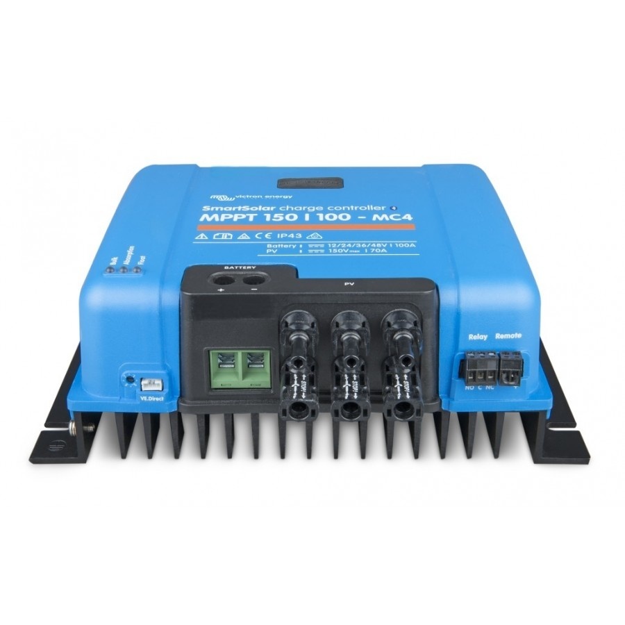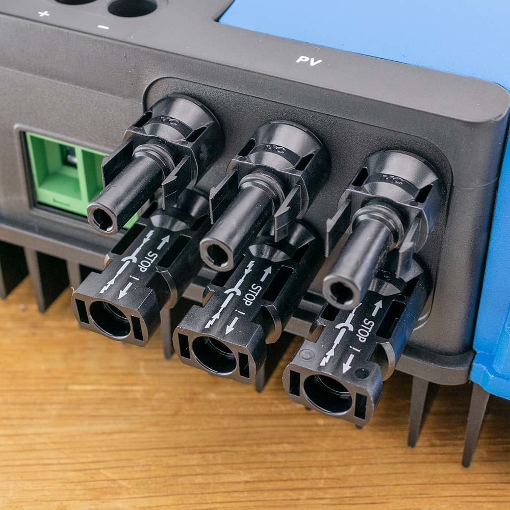 Deze MPPT laadregelaar van Victron is uitgerust met 3 MC4 aansluitingen. U kunt hierop 3 sets van zonnepanelen aansluiten van maximaal 150V elk aansluiten. U kunt hierbij gebruik maken van de MC4 stekkers. Per zonnepaneel of set aan zonnepanelen kan de laadregelaar maximaal 30A aan stroom verwerken.