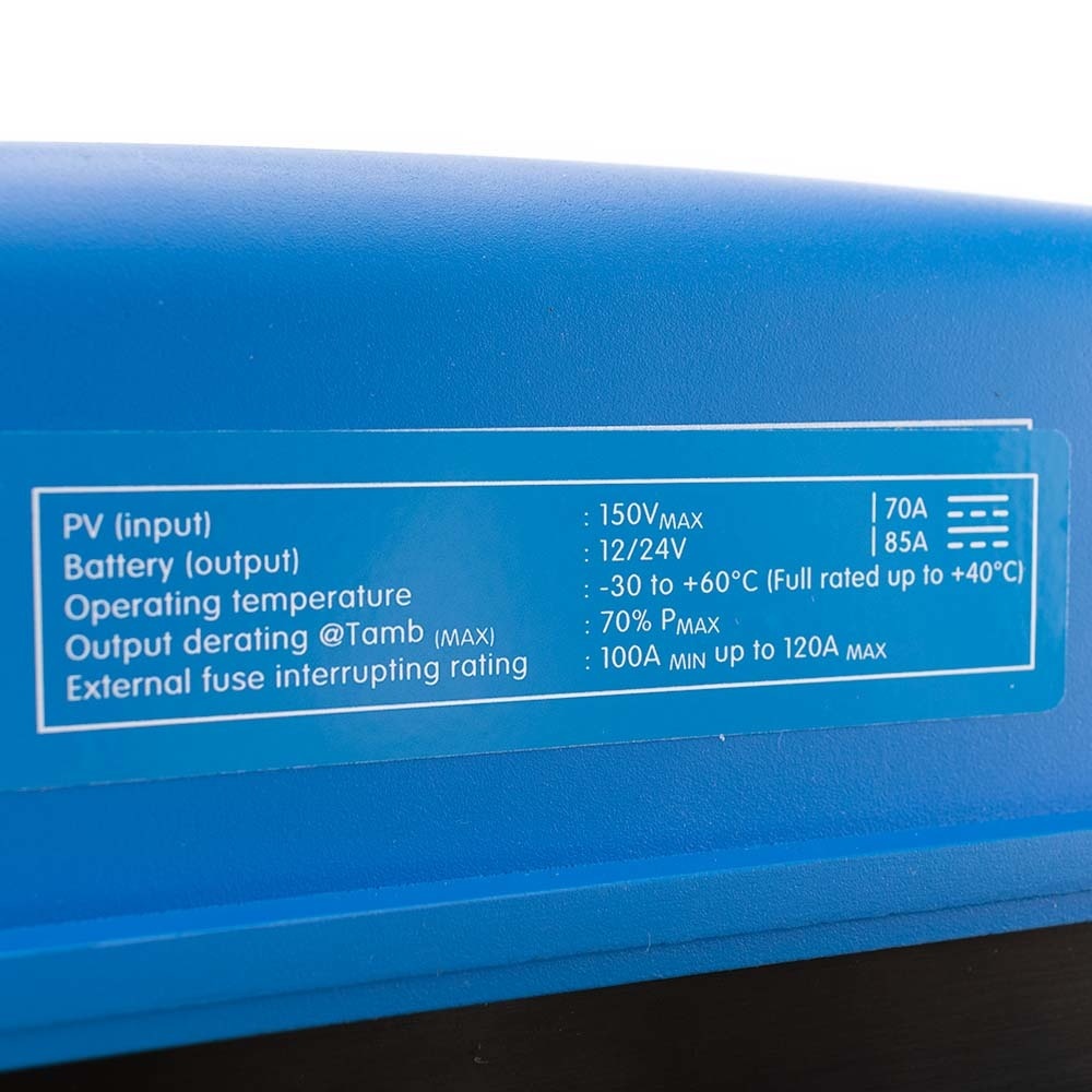 De Victron SmartSolar MPPT 150/85 - MC4 VE.Can Solar Laadregelaar is een snelle laadregelaar geschikt voor 12V, 24V of 48V systemen. De SmartSolar MPPT 150/85 - MC4 levert een efficiënte en hoge opbrengst en bedient u met uw telefoon. Het binnenkomende maximale voltage aan zonnepanelen dat aangesloten kan worden op deze laadregelaar is 150V (en dat voor maximaal 3 zonnepanelen of sets aan zonnepanelen). Het maximale uitgaande vermogen aan ampère is 85A voor deze laadcontroller.