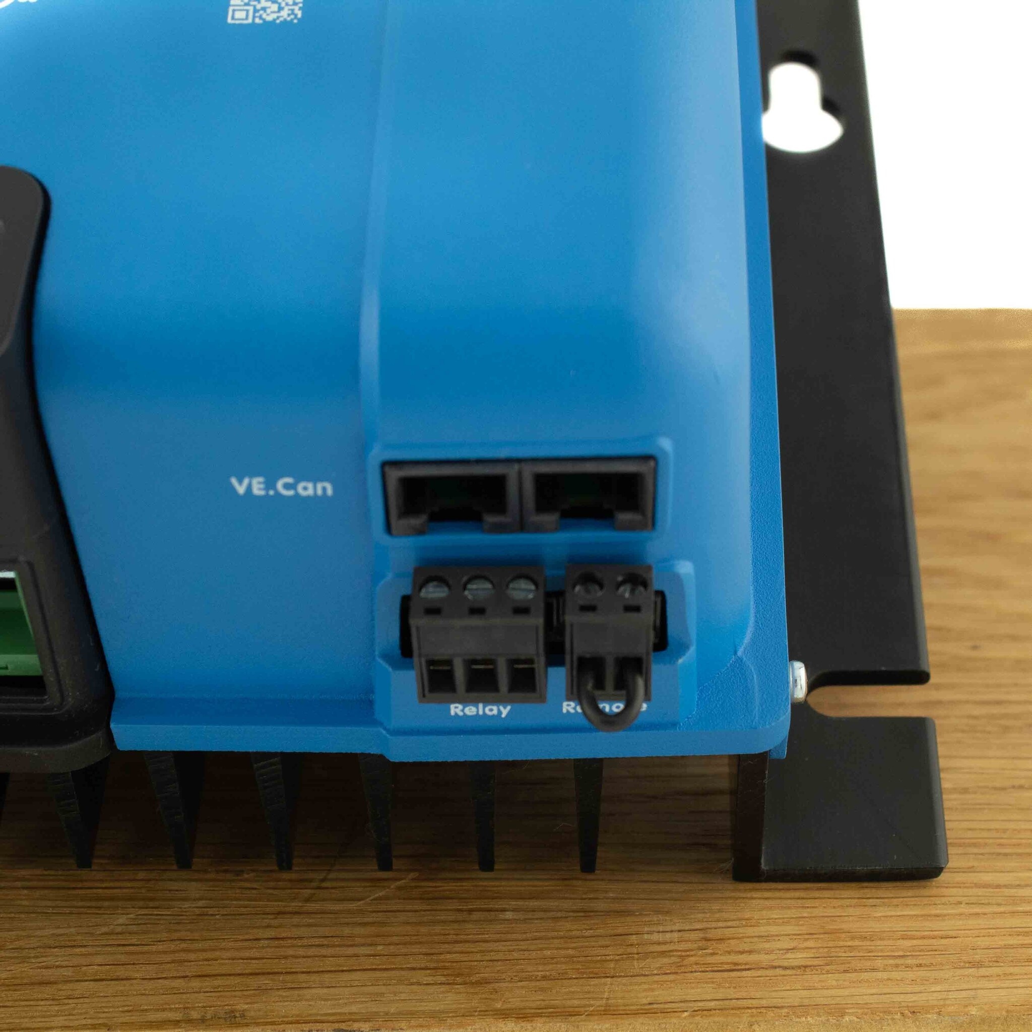 Deze MPPT laadregelaar is uitgerust met zowel VE.Direct als met VE.Can. Met VE.Can of Bluetooth kunnen tot 25 zonneladers in serie gezet worden, en verbonden worden met een Color Control GX of ander GX-toestel. Elke Regelaar kan individueel beheerd worden, bijvoorbeeld met een smartphone of iPad (Bluetooth) of met een Color Control GX (VE.Can) en dan eventueel ook op de VRM-website.
