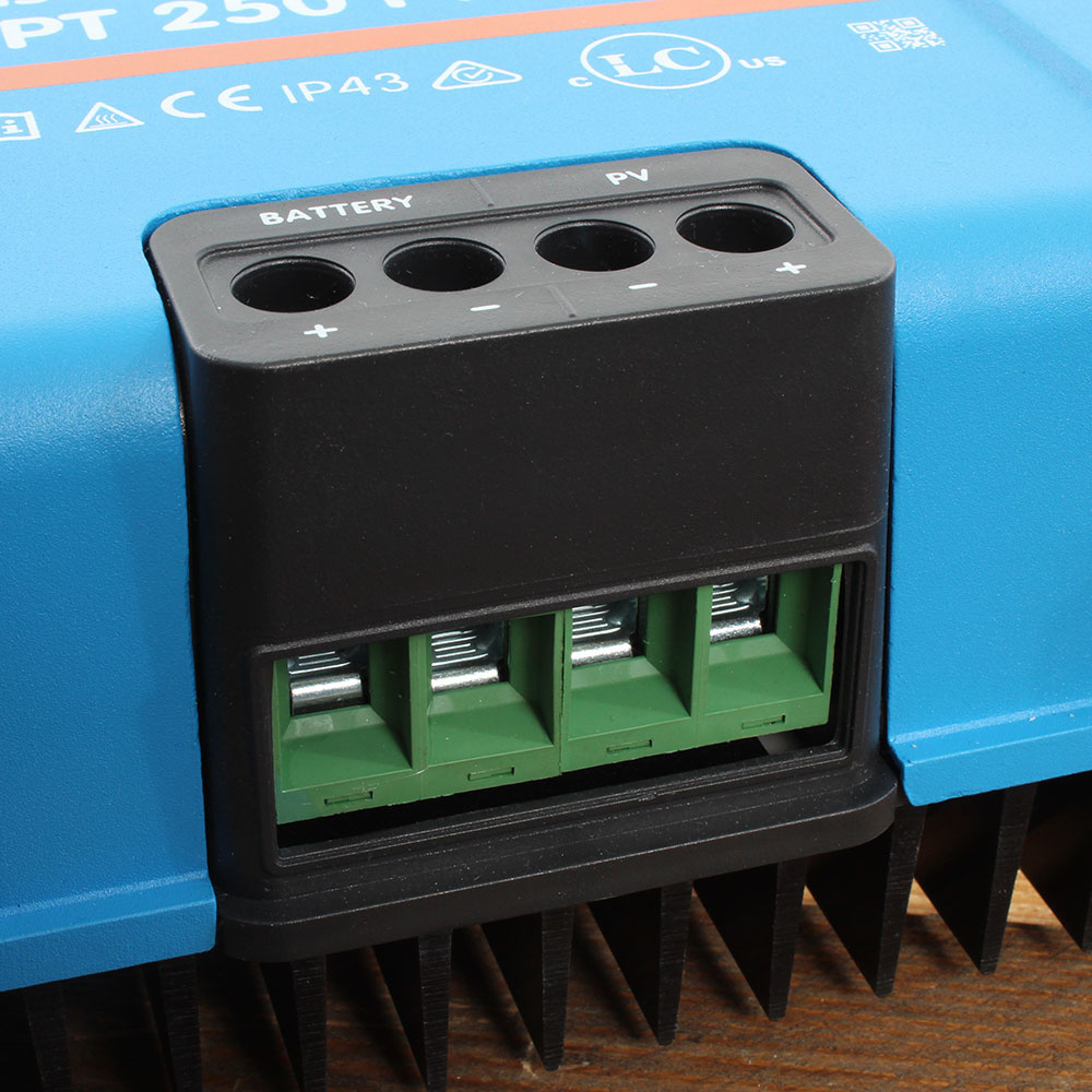 Deze MPPT laadregelaar van Victron is uitgerust met 1 standaard aansluiting voor 1 zonnepaneel of set aan zonnepanelen. U kunt hierop 1 zonnepaneel of set van zonnepanelen aansluiten van maximaal 250V open klemspanning. U kunt hierbij bij voorkeur gebruik maken van hoogwaardige kwaliteit koperen bekabeling. Onderaan deze productbeschrijving kunt u doorklikken naar onze accukabels en specifieke solar kabels.