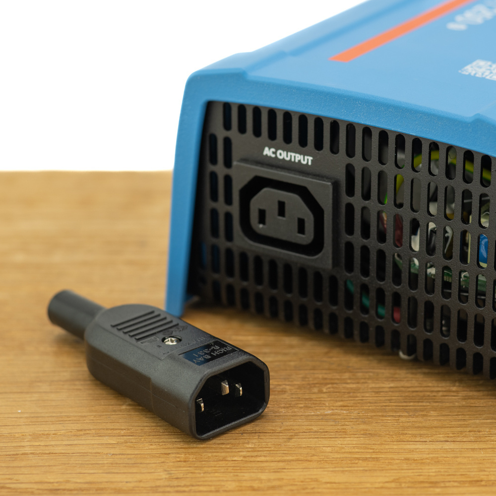 Een IEC-320 mannelijke stekker is inbegrepen zodat u gemakkelijk een 230V aansluiting kunt maken met de omvormer.