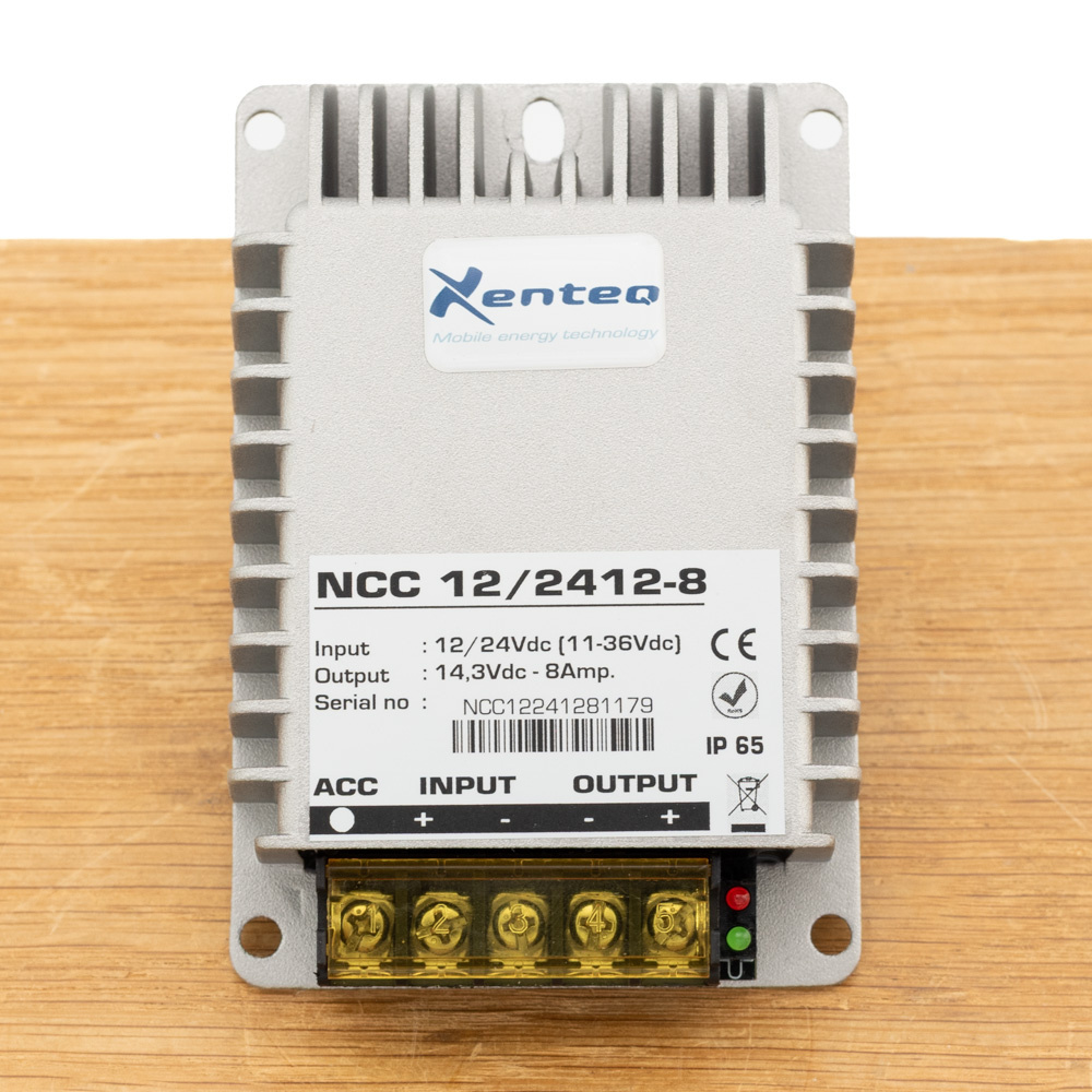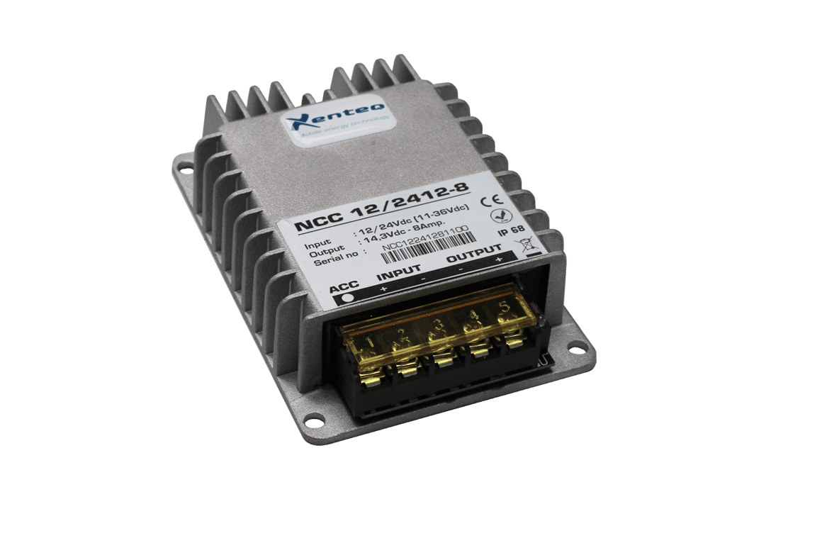 Met de Xenteq NCC 12/24 12-8 DC-DC lader kunt u een 12V accu opladen in een 12V of 24V systeem. De Xenteq NCC DC-DC lader lost de laadproblematiek bij een Euro 5/6 dynamo op door de dynamo actief te houden als de startaccu vol is. Deze NCC lader van Xenteq is speciaal ontwikkeld voor gebruik in systemen met een ECO (slimme) dynamo (Euro 5 / Euro 6 motoren). Ondanks de wisselende dynamo-spanning kan de aangesloten accu goed en gecontroleerd worden opgeladen door deze DC-DC lader.