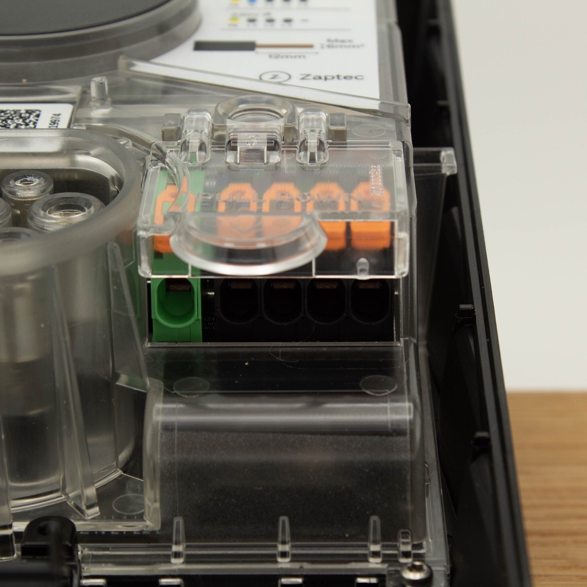 De meegeleverde Zaptec Sense P1 maakt dynamische load balancing mogelijk. Deze module wordt aangesloten op de P1-poort van de slimme meter en meet continu het actuele stroomverbruik in de woning. Op basis daarvan past de laadpaal automatisch het laadvermogen aan.
