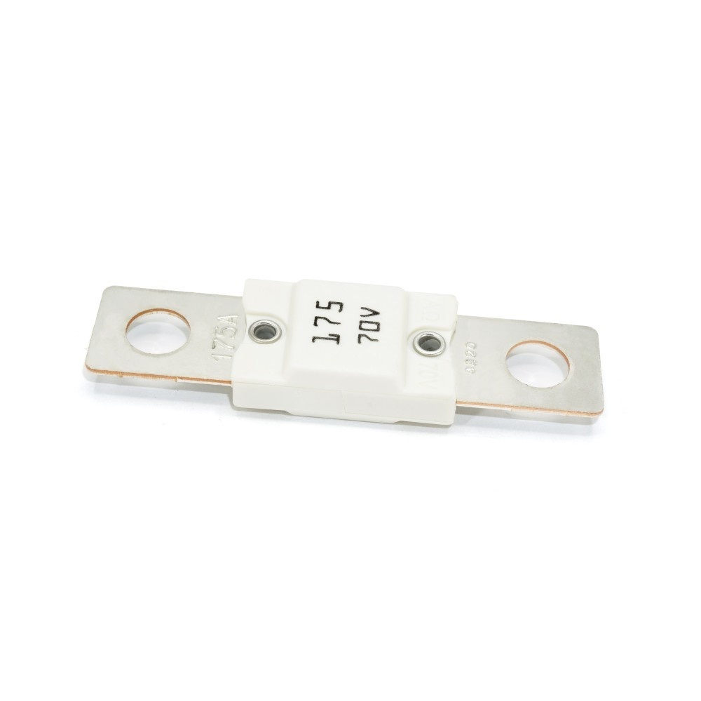 Deze merkloze 175A MEGA Zekering is bedoeld voor gelijkstroomsystemen tot een voltage van 70V. Het is een hoogwaardige kwaliteit schroefzekering waarmee u uw installatie veilig afzekert. Op de zekering is aan beide kanten een M8 gat aanwezig, geschikt voor de montage op een M8 bout/ draadeind.