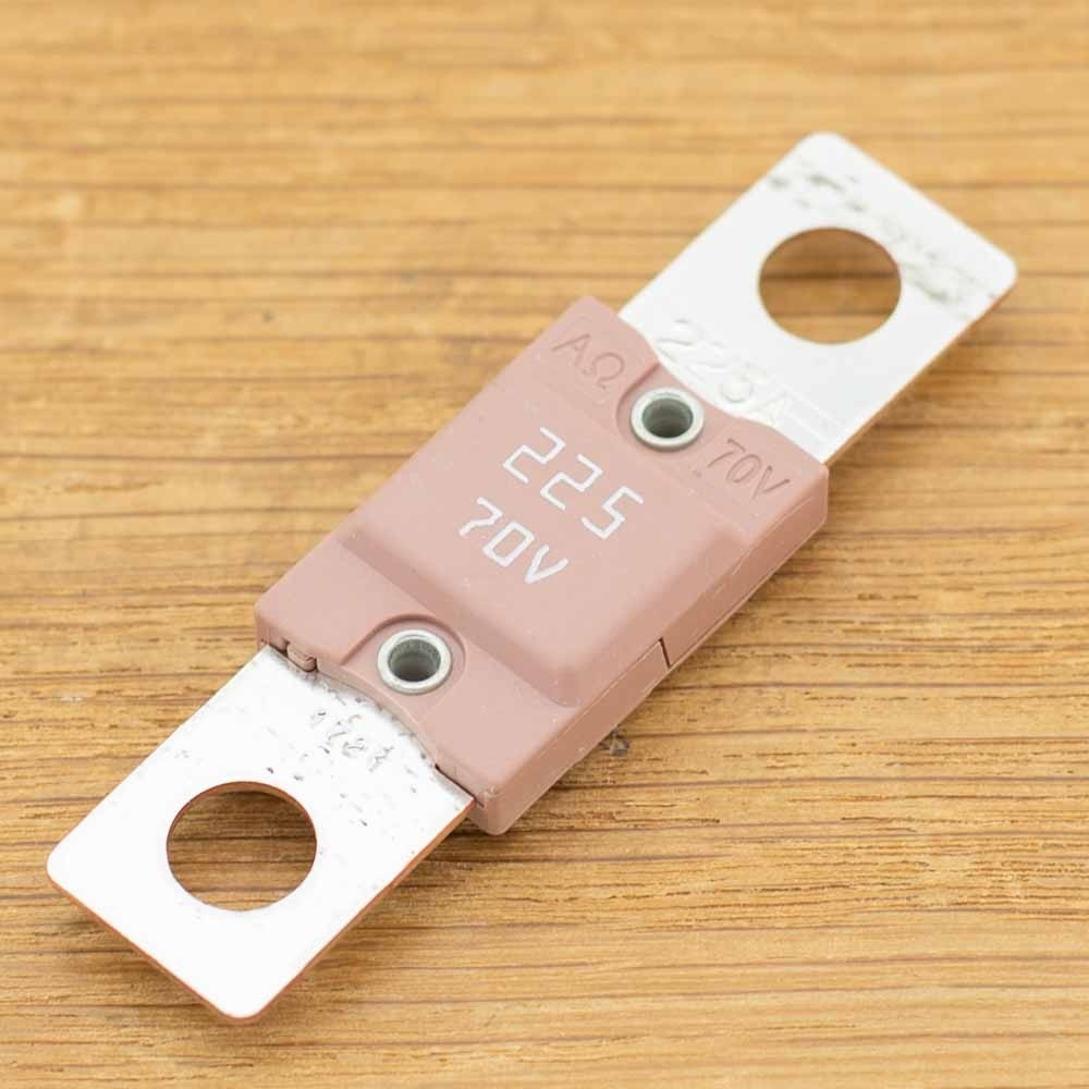 Deze merkloze 225A MEGA Zekering is bedoeld voor gelijkstroomsystemen tot een voltage van 70V. Het is een hoogwaardige kwaliteit schroefzekering waarmee u uw installatie veilig afzekert. Op de zekering is aan beide kanten een M8 gat aanwezig, geschikt voor de montage op een M8 bout/ draadeind.