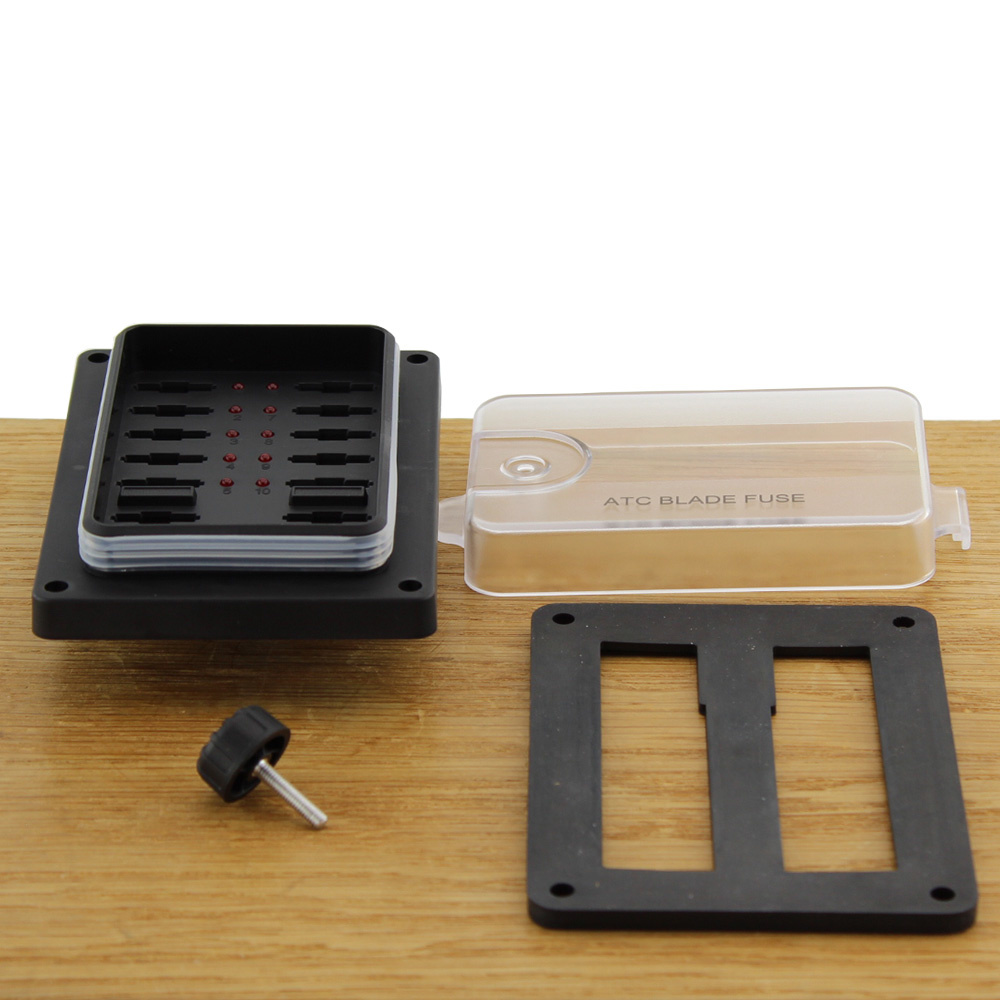 Deze verdeeldoos is bedoeld voor inbouw in een paneel of dashboard. Door de rubber afdichtingen langs de transparante kap en langs de achterkant van de zekeringhouder is deze zekering distributie spatwaterdicht.