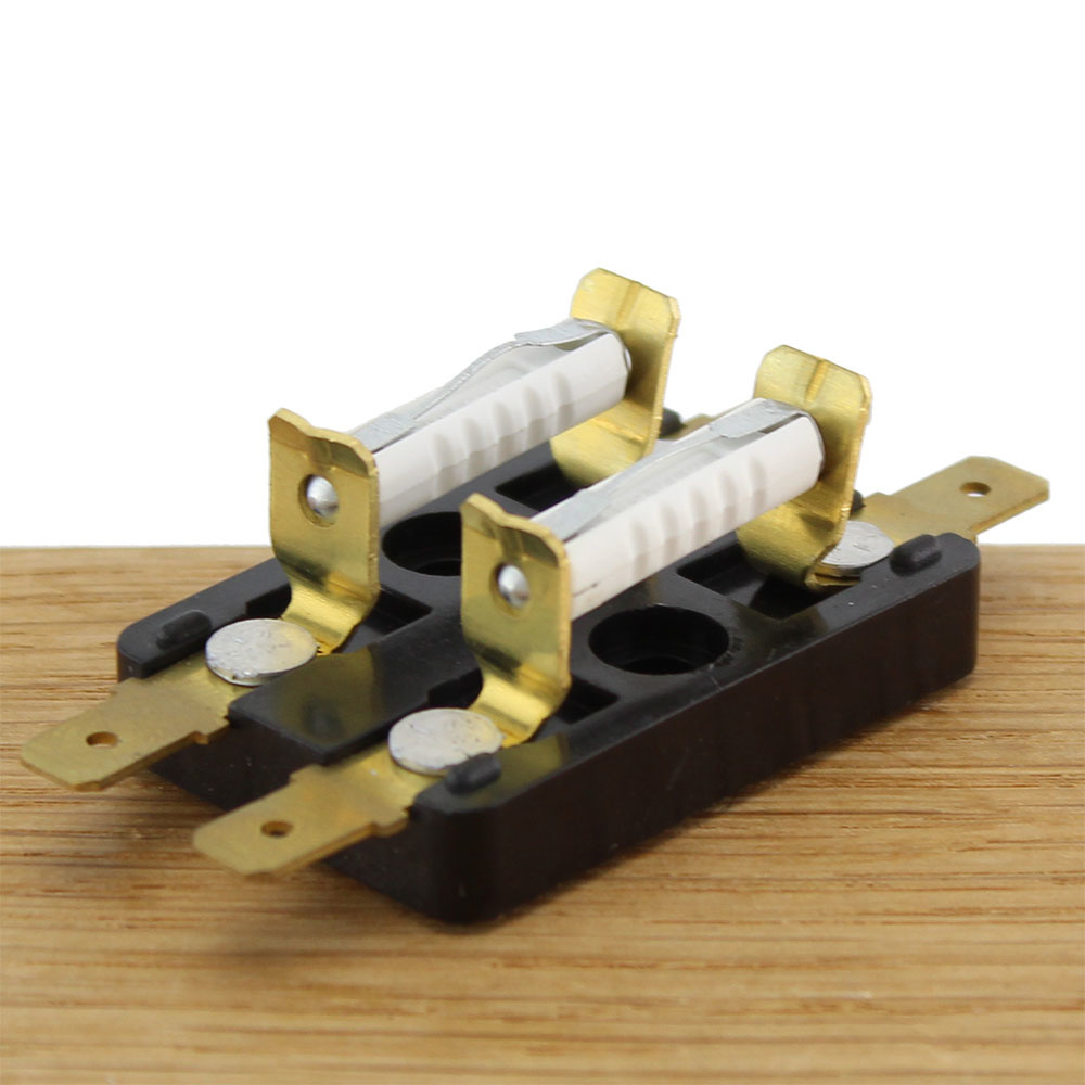 Zekeringhouder 'Merit' bestemd voor twee zekeringen. De zekeringhouder wordt geleverd inclusief 8A zekeringen en is voorzien van een transparante afdekkap. Het gaat hier om een houder voor steenzekeringen (keramisch). Een steenzekering is bestand tegen hoge stromen en dit type zekering wordt vaak gebruikt in (oudere) auto's.