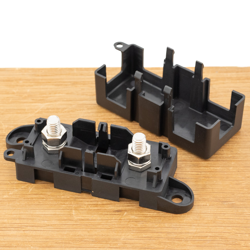 Deze zekeringhouder/ Fuse holder met afdekkap is geschikt voor een MEGA zekering van 40A tot maximaal 300A.